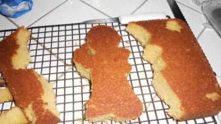 For the forming of mario I will be using the image provided, but you may use another picture. Para la forma de tomar la fotografía de mario y coloque encima el 8 "x 8" torta utilice su cuchillo para cortar su forma y es bastante simple. Avanzando sobre los cupcakes. Para hacer el tubo necesita 2 cupcakes con el primer corte que tiene forma un bombillo pequeño, aproximadamente 2/3 de su altura normal. Con el segundo corte para que la parte superior es plana pero el fondo es como un cillender. Para el mishroom necesita 2 cupcakes. con el puño de corte a cerca de 2/3 es alta con la parte inferior. Luego con el segundo corte lo que tiene forma casi una gran cúpula. Por último, la gooba. Con el goomba solo necesita 1 Magdalena. Corte en la parte inferior para que tenga un pequeño óvalo cerca del centro. Ahora pasaremos a la hiela.