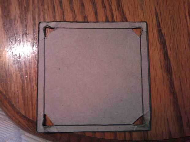 Después de que el diseño fue hecho, tuve que averiguar cuánto quería que las plazas a ser. Este es un diseño bastante simple y quería esto para cubrir la cama de mi novio, así que decidí hacer las plazas acabadas medida 3,5" a través de. Después tomó en cuenta la. 5" margen en ambos lados, hice una plantilla de cartón 4" a través con las esquinas del interno 3.5" Plaza asomó fuera.