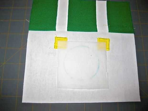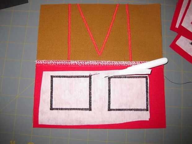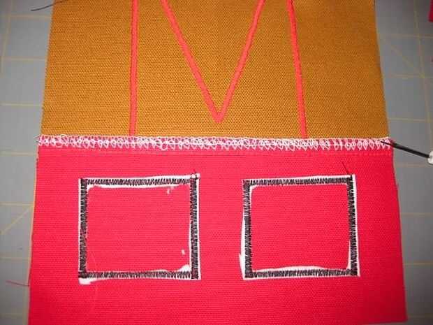 Los bolsillos traseros son sólo una negro puntada cosida todo el contorno de las dos plazas en la parte posterior. Los bolsillos son 1 3/4 x 2 pulgadas y utilizan el papel lejos de desgarro así en ellos. Se colocaron a 1 pulgada desde la parte inferior y 1 pulgada de los lados. No te olvides de quitar a la tela lejos del rasgón.