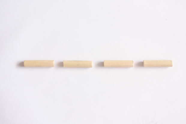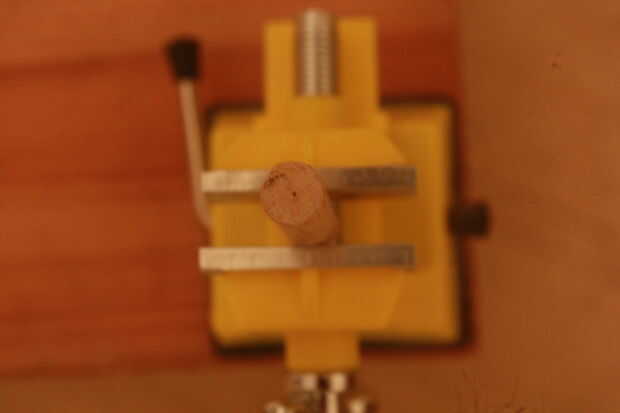 3. usando el tornillo/clavo afilado, martillo de un pequeño agujero en los extremos de las piezas de 4 cm.