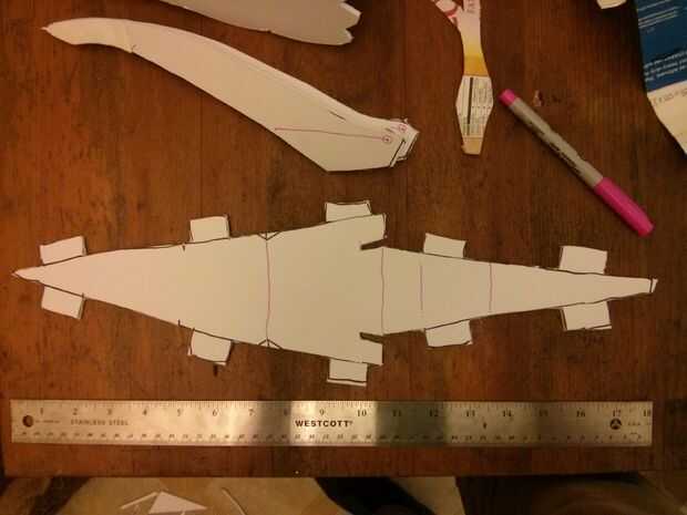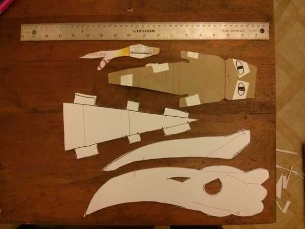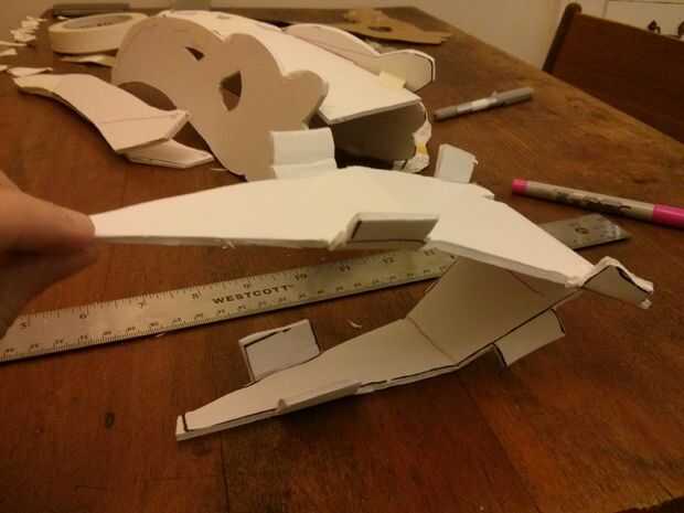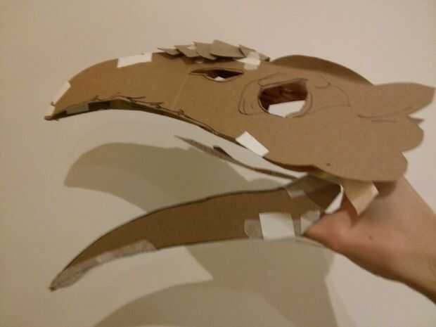Empezamos haciendo un prototipo de cartón (primera foto) y afinando hasta que parecía correcta. Esto ayudó en averiguar cómo las formas se encajan y cómo podría funcionar el interior de la boca.