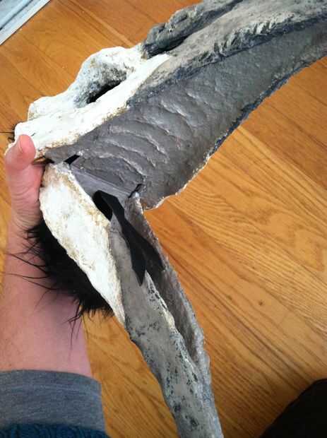 En esta etapa también hemos añadido una lengua bífida, hecha de un trozo de cuero. Es simplemente caliente pegado allí.