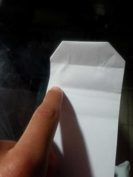 Ahora doble hacia abajo las esquinas de la parte inferior, a la línea que estoy señalando.