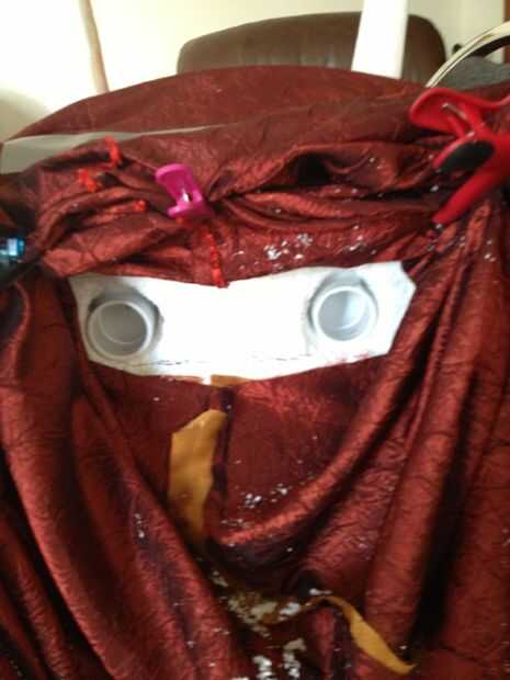 Una vez seco, colocar la cabeza al sistema teeter totter y cuelgue la tela.
