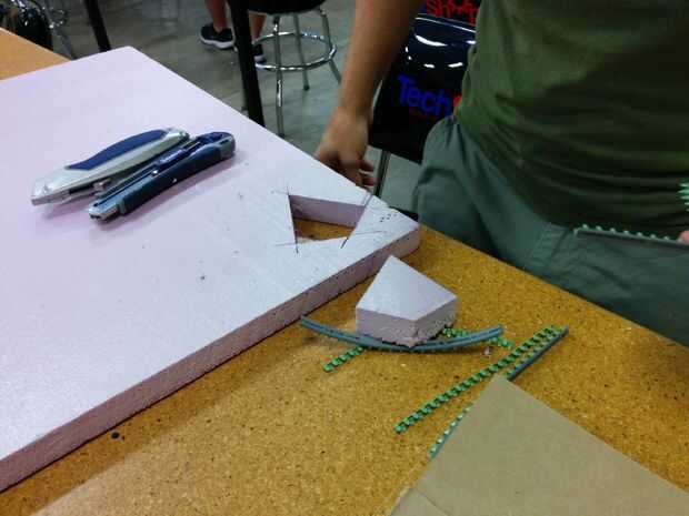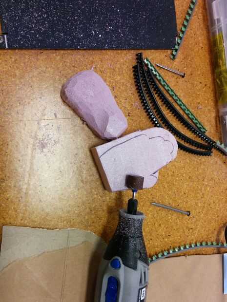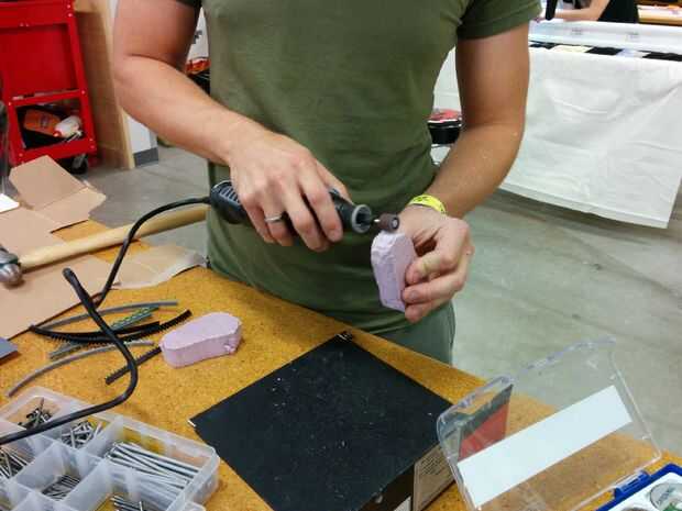 Cortar la cabeza. Hombre ardiente cambia cada año pero la cabeza siempre es copado los bordes de una forma u otra. Se utilizó un diseño de cometa. Utilice sus cuchillas para cortar hacia fuera. Los pies fueron a comentar. Desde aquí usted usará una dremel a los pies de la forma (si es necesario). Utilice la punta de la lijadora. Le advierto, que esto puede conseguir sucio si usted está tomando mucho material fuera.
