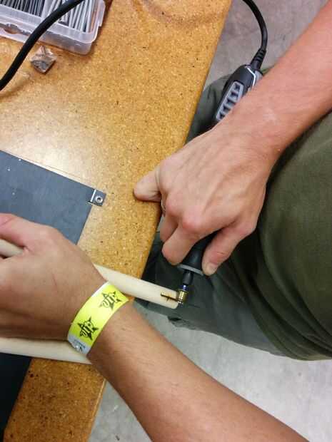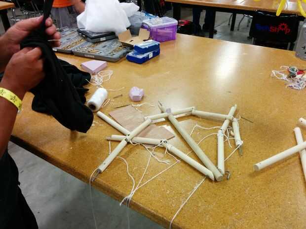 Permite iniciar con la construcción de un torso! Utilizando una Dremel con una cuchilla circular de corte de madera, corte una espiga de 18" para la columna vertebral y una clavija de 6" para los hombros. En un extremo de la espiga largo, mida y marque 2! / 2" hacia abajo. A continuación, marca la espiga de 6" en el centro. Estas dos marcas son donde se unirá la columna vertebral y los hombros uno al otro. Muesca de que los tacos en estas dos marcas de corte aproximadamente 1/3 de la forma a través de la espiga y solo lo suficientemente ancho como para el otro pasador para colocar dentro de la muesca. Como estamos usando pasadores de 1/2", medida de 1/4" a la izquierda y a la derecha de sus marcas para una 1/2" donde vas a cortar la muesca en el 18" y 6" pieza. Un cincel de madera es útil para eliminar el exceso de madera de la muesca una vez realizados los cortes. Ahora ellos cabrán en cada otro similar a cómo las esquinas de una cabaña de madera traben por fijar una posición a otra. Utilizar un tornillo para madera para fijar los dos juntos y se taladraron previamente antes de colocar juntos para hacer lo que parece una cruz. La parte superior de la Cruz se convertirá en el cuello y atamos un tornillo para madera en la parte superior de esta para que la cabeza puede colocarse fácilmente. Taladrar un agujero en cada extremo de la espiga del hombro donde se montarán los brazos viene a continuación. Cuando el hombro se unen al brazo, simplemente uso cadena a hilo de rosca a través de este agujero y a través del orificio perforado en el extremo del brazo superior y los brazos se cuelga de los hombros naturalmente. ¿Cómo crear funcional brazo y pierna juntas de espigas? Usted querrá reducir aproximadamente una pulgada y a medio camino a través del diámetro de la espiga. Desde aquí podrá utilizar el taladro de mano y perfore un pequeño agujero de aproximadamente 1/4 de pulgada hacia abajo desde el extremo de las espigas. Recuerde que se trata de una articulación y las 2 barras se gira fuera de él, por lo que es una buena idea juntarlos y tener una idea de cómo trabajará. Una vez que los brazos y las piernas son perforadas y corte puede comenzar a ponerlos juntos. Ahora cuando la construcción de un títere, tenga en cuenta estamos levantando las tapas de la rodilla así que usted querrá añadir aproximadamente 3 pies de cuerda a cada uno de ellos y atar alrededor de las articulaciones. Para preparar los brazos para el montaje de las manos, tomar dos 2" tornillos para madera y a cortar cabezas, que le deja con sólo la parte roscada. Perfore un agujero de sólo lo suficientemente grande como para las roscas de tornillo en el extremo de cada pasador del brazo y cada mano de la espuma. Te recomiendo tomar un par de pinzas y enroscar el extremo del hilo en la cabeza del tornillo se cortó en los brazos primero, dejando aproximadamente 1" sobresale torcer el aspecto de muñeca de las manos sobre una vez la ropa esté en. En este punto, puede utilizar la misma técnica en la parte superior del cuello para sujetar la cabeza. A continuación, cortar dos secciones pequeñas del material espiga, como serán el tobillo que sostiene los pies. Utilizamos dos 2 1/2" largo de piezas y creado el mismo conjunto en un lado de las clavijas de nuevo corte 2 1/2" como se describió anteriormente. Al otro lado de la 2 1/2" piezas se inserta en un orificio en la parte superior de cada pie. Para ello, haga un agujero donde un tobillo normalmente se fijan a un pie sólo lo suficientemente grande como para introducir la espiga de 2 1/2" de largo. Nos describen el círculo con un lápiz puntiagudo colocando estas piezas cortas donde quería que la madera que se insertará en los pies de espuma y trazar el círculo, luego perforar la espuma el interior de este círculo con la dremel y un poco, quitar la espuma y había pegado las clavijas en su lugar. Una vez que el pegamento se haya secado, los dos pies con los tobillos Unidos están listos para montarse en la parte inferior de las piernas. Ahora para el propio cuerpo! Cortar un taco de 18" de largo y por último, perfore un agujero justo encima de cada articulación, muñeca articulación y donde el cuello y deben tacos juntos y atar una cuerda alrededor de 3 pies a cada uno por roscado a través del agujero y haga un nudo para asegurar. Recuerde que la ropa debe ser en primer lugar antes de colocar las manos y los pies!