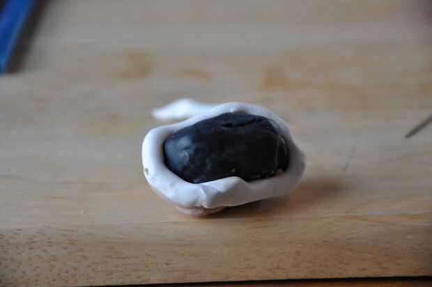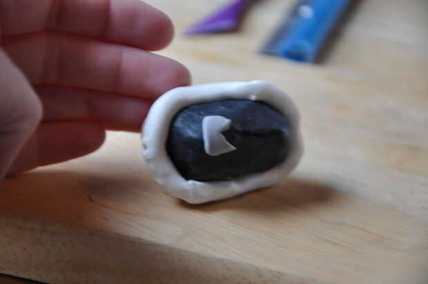+ Rodillo un tronco blanco y Envuélvala alrededor de la costura de arcilla tan y negra. Mantenga el agujero claro! * Foto 5, Foto 6