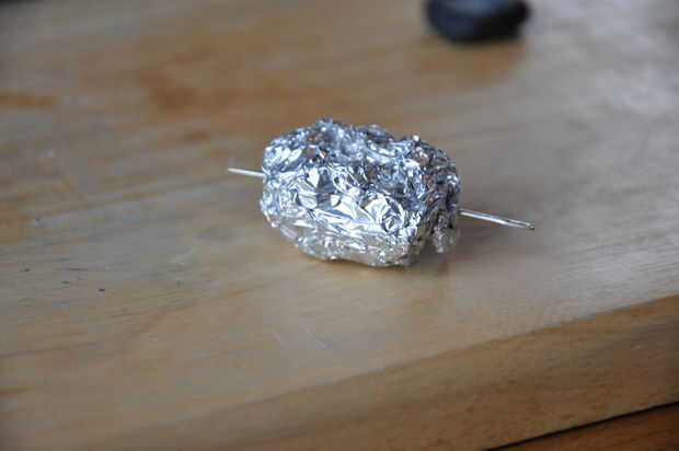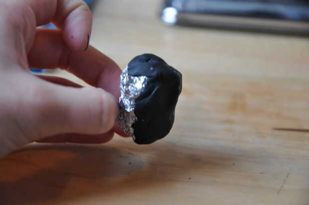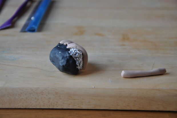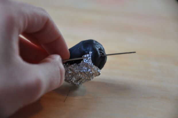 + Usé papel de aluminio para el centro del cuerpo, para guardar arcilla, disminuir el tiempo de cocción y hacer que pesan menos. Una forma esférica a ovalada y perfore un agujero a través del centro (forma larga) para el hilo. * Foto 1