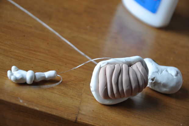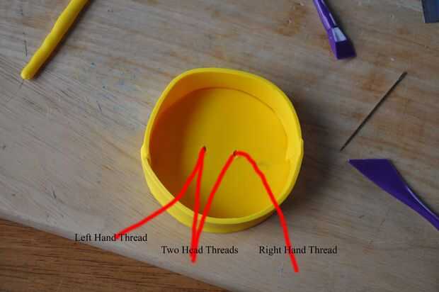 + Ejecutar las cuerdas a través de los controles como se muestra en la imagen. Deja hilos a través del orificio izquierdo rosca derecha a través del orificio derecho, fractura la cabeza rosca por la mitad. Atan en nudos de la parte superiores, seguras con pegamento. * pic 8