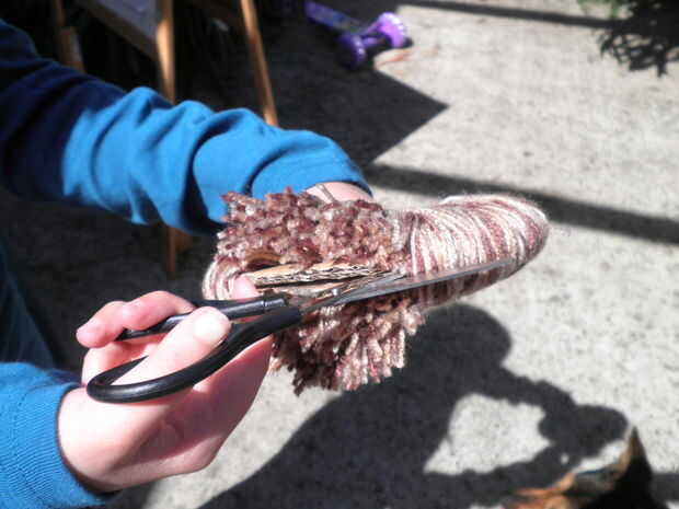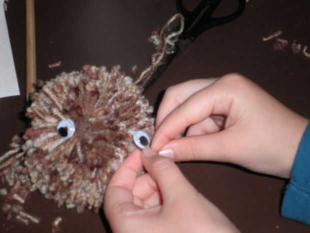Cortar 2 triángulos de fieltro y coser 2 lado juntos y llenar con relleno y coser a continuación coser a la cabeza que acaba de hace y cose los ojos a los lados.