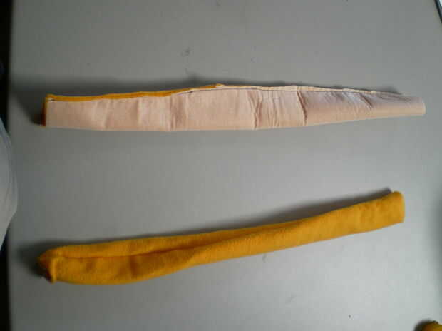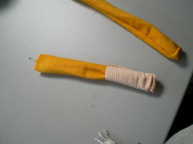 hacer armas (cilindros de paño grueso y suave que se convirtió en el otro lado)