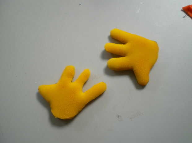 manos (piezas de espuma con el lado pegado alrededor) o se puede coser sobre un pedazo doblado de lana y con relleno de poliéster