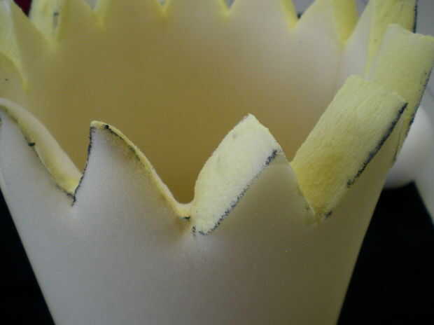 Materials:Espuma de color amarillo, blanco y negro artesanalPegamento calienteGran contenedor redondo: Para este ejercicio, utilizo un huevo de Pascua grandeTijerasClip de papelY un marcador de tinta permanente.En primer lugar, puede toma su envase r