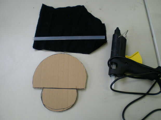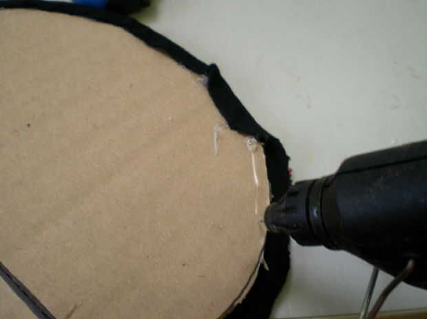 pegamento negro paño grueso y suave usando pegamento caliente (tenga cuidado es muy caliente)