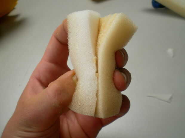 hacer un cilindro de esponja square y pegar un extremo de manera que ser redondo (aquí tienes que experimentar un poco)