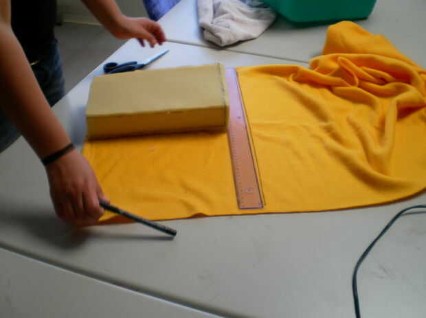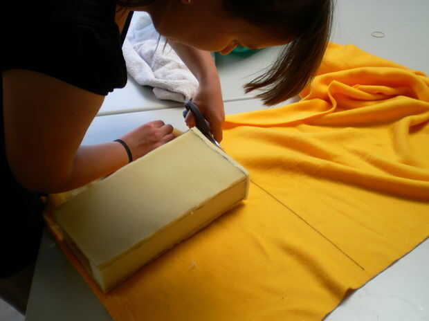cortado, sino dejar un margen de 3 centímetros en top y botom para la tela porque desea cubrir también la parte inferior y superior de esta