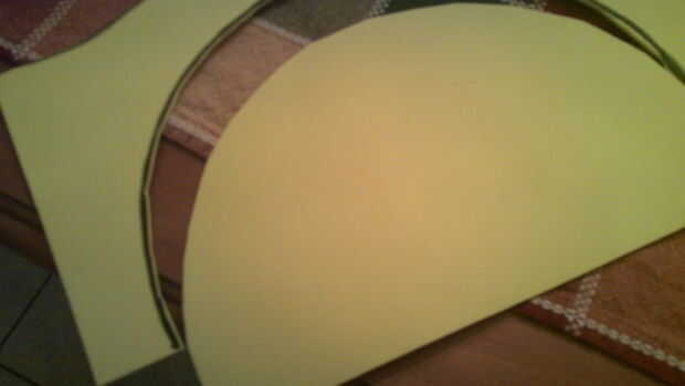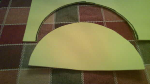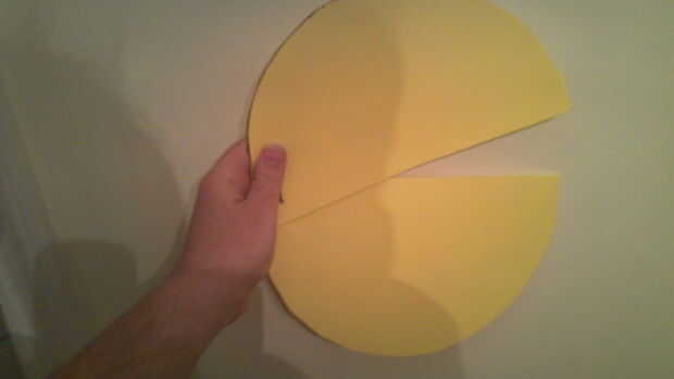 En primer lugar, tomar su envase redondo y poner la mitad sobre el borde de tu espuma antes de remontar el marcador. Traza un medio círculo con su marcador. Luego córtelo hacia fuera y repetir el proceso otra vez. Coloque las esquinas de sus semicírculos y con sus tijeras o perforadora si lo prefiere, haga un orificio a través de cada uno. Doblar el clip como se muestra en la imagen y deslice a través del orificio (tenga cuidado, doblar una manera para que no te duele la mano cuando usted funciona la marioneta).  Ahora debe mirar más como Pac-Man.