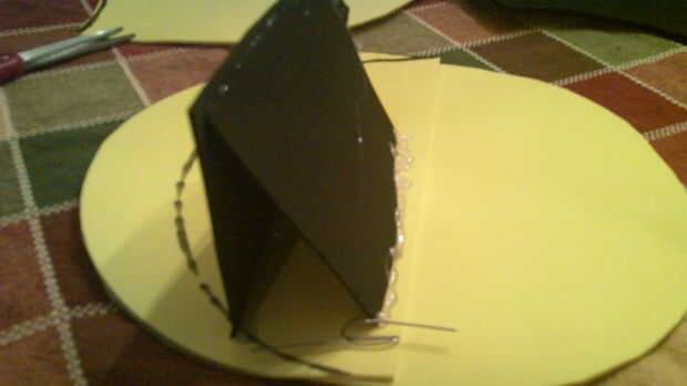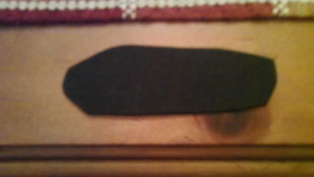 Ahora hacer dos pequeños semicírculos con la espuma negra y forma por lo que será más fácil colocar su mano dentro. Con el pegamento caliente, construir una estructura triangular como el de la imagen. Después de esto, repita el proceso una vez más. Una vez que ha completado y el pegamento se haya secado, recorta un pequeño rectángulo de su espuma blanca antes de hacer una pieza de forma ovalada de su espuma negra. Pegar la pieza blanca en su marioneta y centro de la pieza negra en mitad de la pieza blanca para formar el ojo. Y cómo hacer una marioneta de Pac-Man.