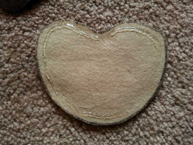 Tomar sus luz pedazos de cara, el oído y el cuerpo marrón y ejecutar una línea de pegamento cerca del borde de cada pieza una a la vez.