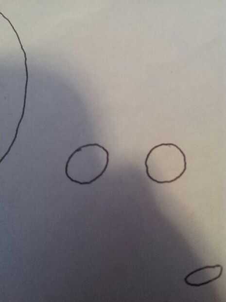 Cortar dos círculos pequeños de su tela ojo y dibujar un círculo más pequeño dentro con un marcador. Cola anterior pero ligeramente superpuestas las mejillas.