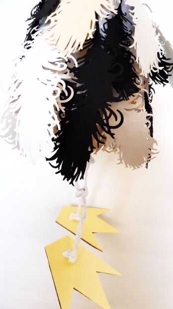 Un títere operado por la cadena con los ojos y los párpados móvilesEquipo:-Una cara en papel maché, papel maché-4 pelotas de ping pong-alambre-2 palillos de dientes-banda elástica 2-cadena-2 trozos pequeños de madera o plástico-1 Cruz de madera-4 aro