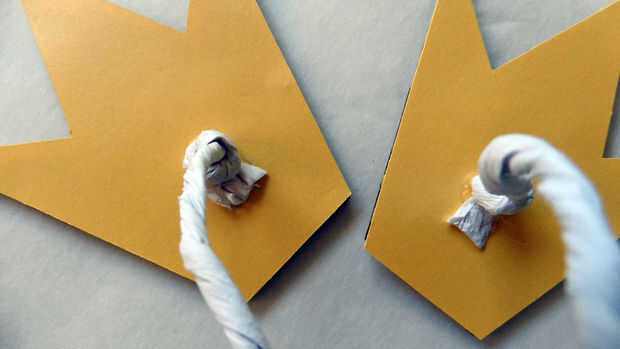 2. Corte las mismas formas de corona de papel amarillo y naranja.