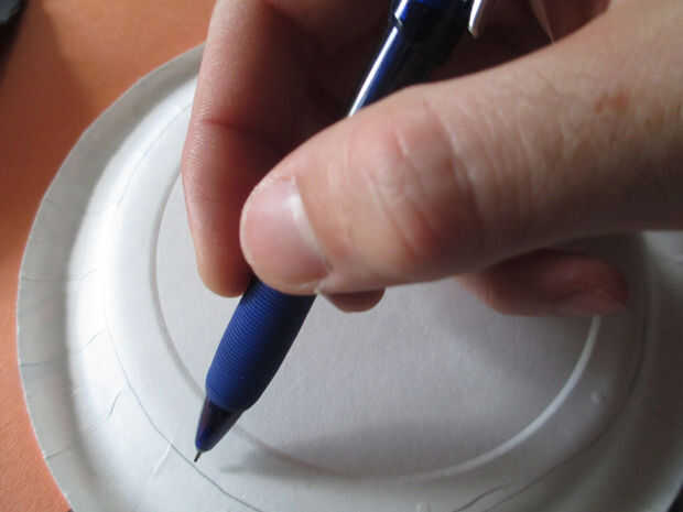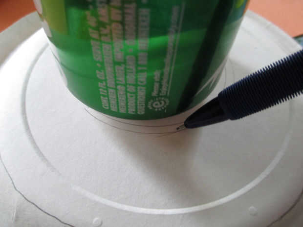 1. Coloque el aluminio puede en el centro del plato de papel y traza alrededor de él para marcar un círculo en el centro.