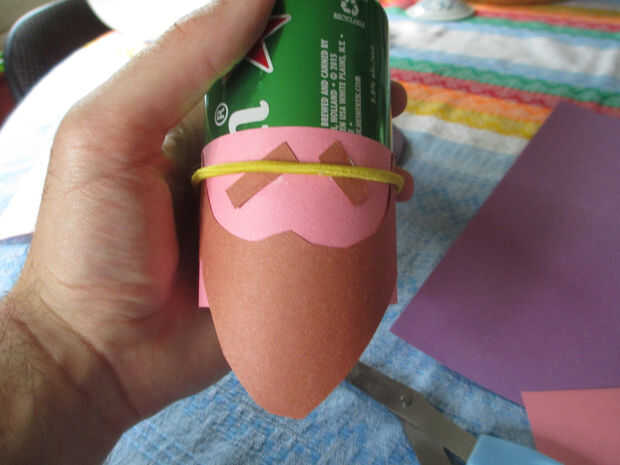 2. Pegue las dos piezas de tela marrón justo por encima de la barba y en ángulo hacia arriba (similar a los ojos)