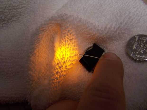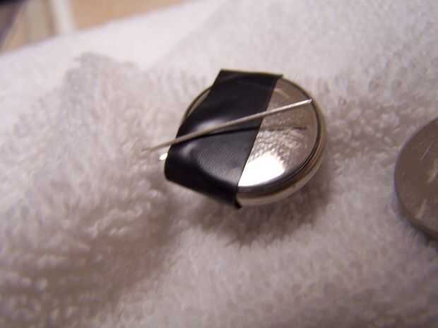 Uno de los cables a la pila de la cinta y envuélvalo con la cinta al otro lado. Debe hacer la instalación así que cuando usted aprieta el otro cable, el LED se ilumina. Usted puede cambiar esto sin embargo te gusta. Puede utilizar el botón o los interruptores DIP, pero de esta manera permite para no soldar para que cualquier persona puede hacer este títere fácilmente y con seguridad.