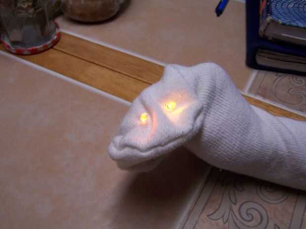 Pero no acaba allí! Añadir adornos a tu títere! Cabello, perillas, gaping bocas con dientes afilados, puntiagudos... lo que tu imaginación se le ocurre! Puede usar LEDs rojos para que tu títere parezca enfadado, también.