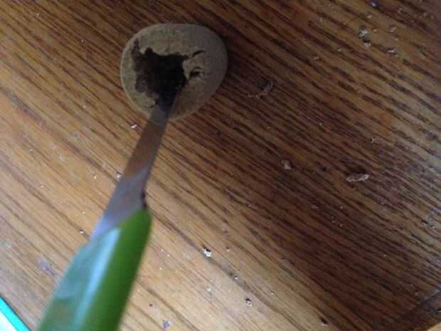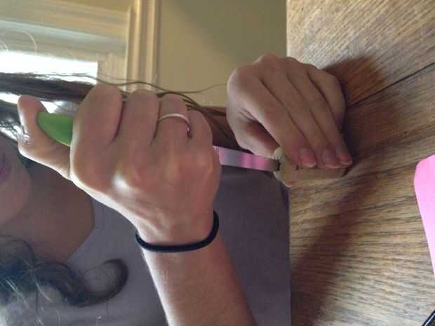 Necesita presión, pero tenga cuidado de no rasgar los bordes. Torcer el cuchillo hacia adelante y hacia atrás.