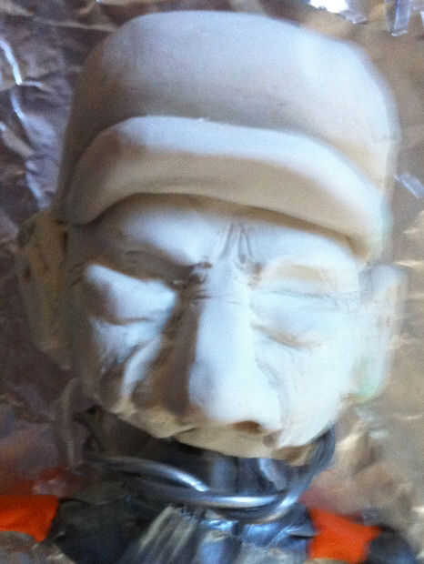 silicona masilla en las mejillas a los lados a la mezcla las mitades de la cara.