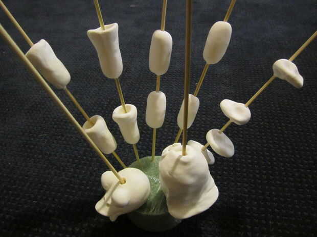 Continuar este proceso con todas las piezas que necesitas para tu títere. Cada pierna y el brazo deben tener dos partes si quieres tener las articulaciones de codo o rodilla y no olvidar las manos y pies. Todas las piezas tienen que estar en pinchos por separado. No dejes que toque mientras que la arcilla está todavía húmeda. No queremos que pegan en este momento.