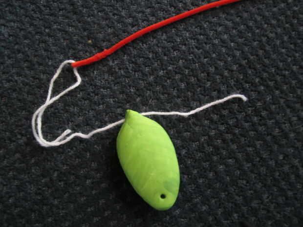 5. con la siguiente cadena, a partir de la parte superior de la cabeza, pasar por la parte superior del cuerpo, alrededor de la mitad de la picadura que es a través de las piernas, y luego nuevamente hacia arriba como se muestra.