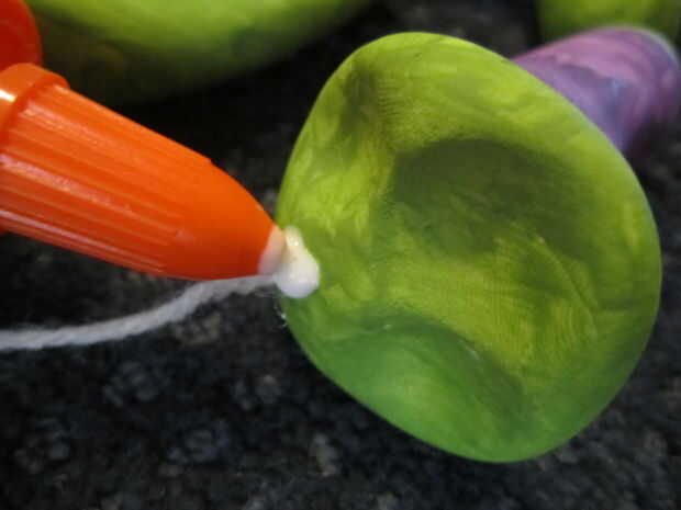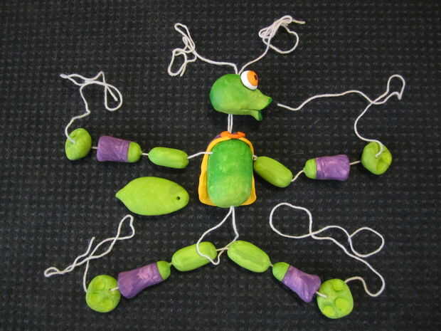 Cinche juntos todas las partes del cuerpo quieras que se vea y apriete el pegamento en las piezas al final de todas las cadenas . Ser generosos. No quieren las partes caerse mientras que su pequeñín está jugando con sus títeres. No pongas pegamento en todas las piezas. El pegamento hace que la cadena dura y que sus partes se muevan libremente.