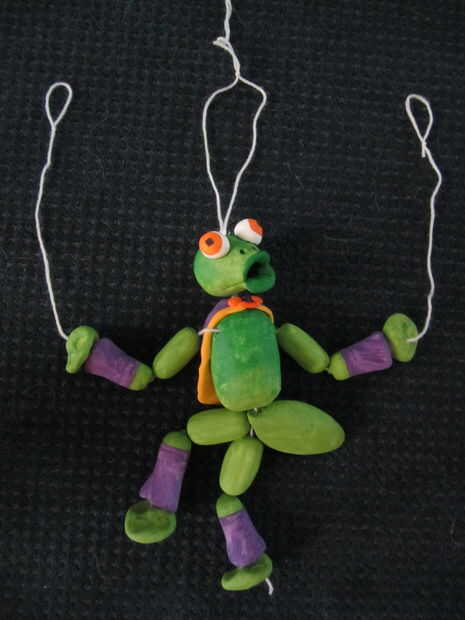 Mis hijos estaban en segundo grado, así que decidí mantener sus títeres simple y más fácil posible operar. Corte las cuerdas de la parte inferior de las piernas y dejarlos a pie por rebote en el suelo. Si tus hijos son mayores o sólo quieres tomar más, puede Agregar cadenas a las "rodillas" o cualquier otro lugar que desea mover. Pero no olvides que solo tienes tantos dedos.