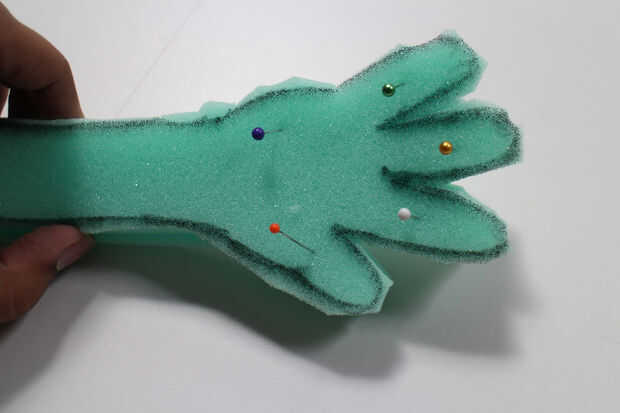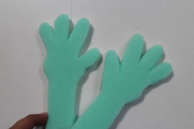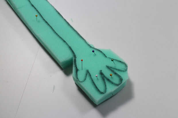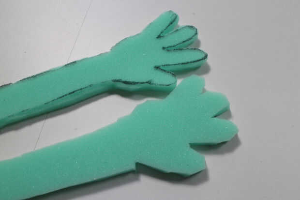 Recortar las dos piezas de espuma para hacer dos brazos idénticos. Recorte adicional puede requerirse para obtener la forma deseada.