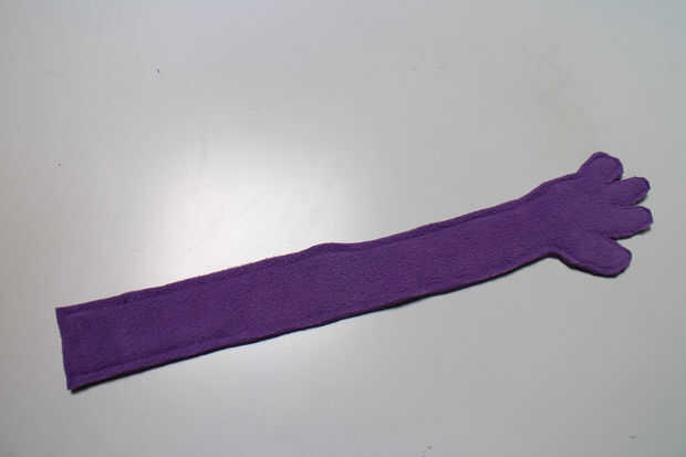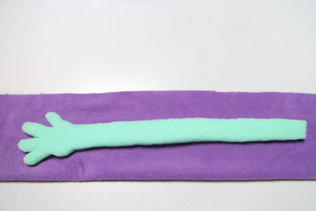 Doble un pedazo largo del paño grueso y suave y colocar un brazo como una plantilla. Recorte el exceso para una costura generoso.