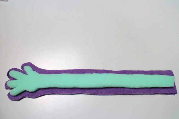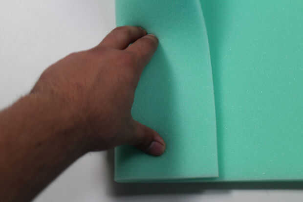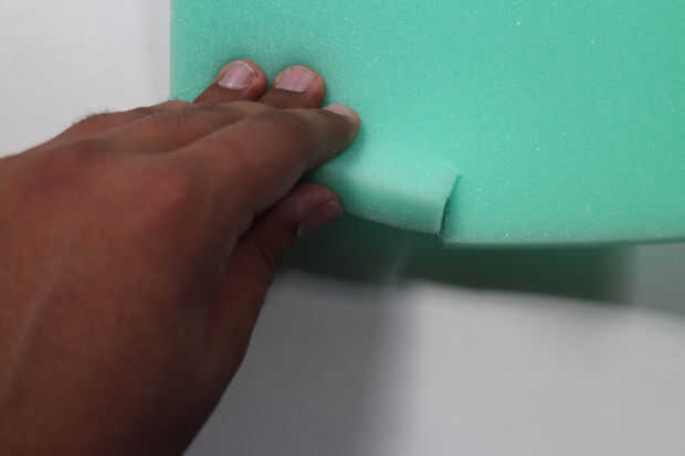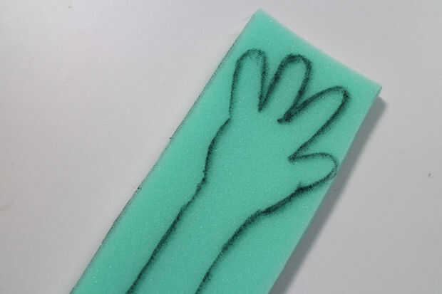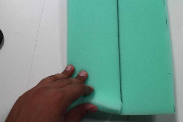 En primer lugar, doble una sección larga de espuma lo suficientemente amplia como para el futuro de la mano.