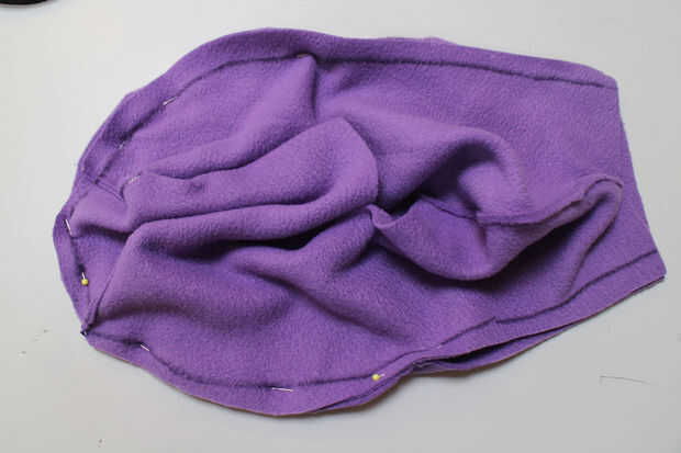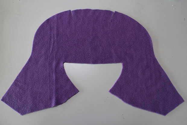 Ponen su patrón de la mitad de la cara sobre el borde doblado de una pieza de paño grueso y suave de la piel y cortar el patrón con un pequeño extra para la costura.