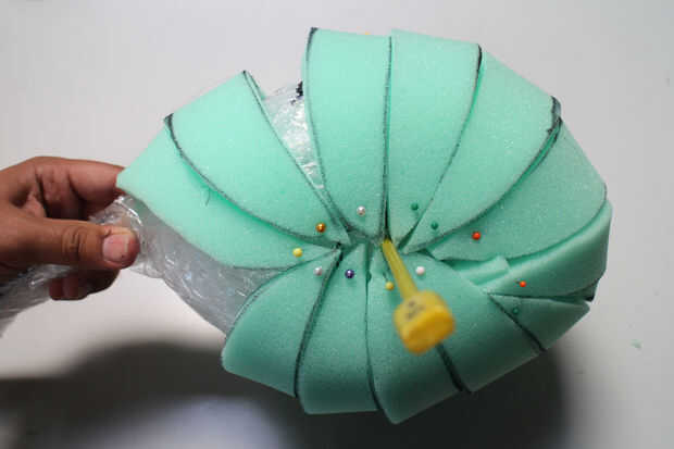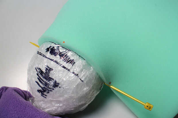 Envolver un trozo de rollo de espuma alrededor de la cara y el pin en la aguja de la simetría.