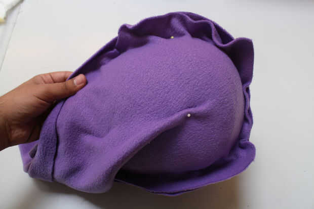 Cuelgue un trozo nuevo de tela de la parte posterior de la forma principal y perno a la pieza de la cara.
