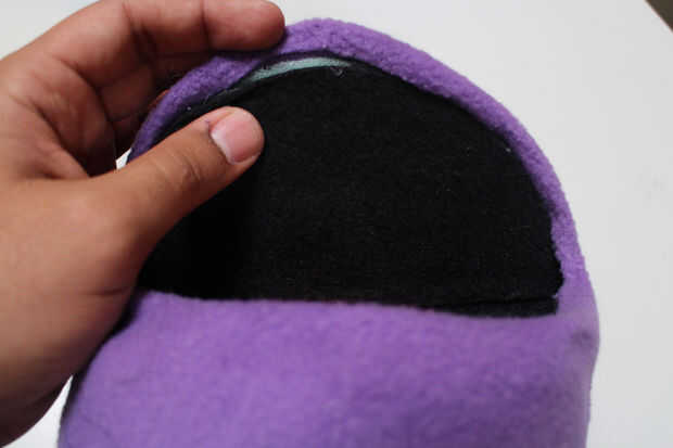 Cortar un agujero para la boca de 1/2" detalle de la forma de la boca. Esto también no tiene que ser bonito, ya que más tarde a doblar sobre el borde de este agujero en un dobladillo limpiador para los "labios".
