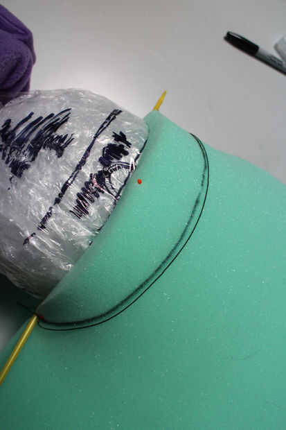 Recortar los bordes de la cabeza que sobresale en ángulo recto por lo que se es más o menos redondeada. Es no tiene que ser demasiado suave como el lana oculta la mayoría de las imperfecciones de la espuma, pero no todos!