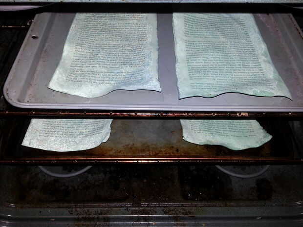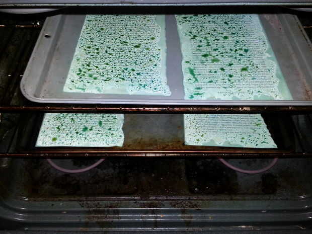 IMPORTANTE!!!!!! Sólo Hornee durante 3 a 5 minutos. Mantener un ojo en los documentos hasta su aspecto elevado y arrugado. Ver fotos de cómo supone que para mirar. Una vez que se ven como eso, el papel del horno y retire de hornear sin quemarse a sí mismo. Si usted tiene más papel para hornear, arrojarlos en la bandeja para hornear y en el horno antes de que el pan se seca incluso. Su multa para hacerlo.