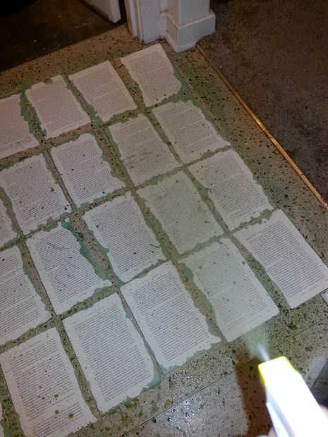 Tome su papel y colóquelos sobre una superficie plana donde usted no tiene miedo a hacer un lío y se puede limpiar con cierta relativa facilidad. Difunde hacia fuera uniformemente a través de su superficie solicitada, asegurándose de que ninguno de ellos se superponen.