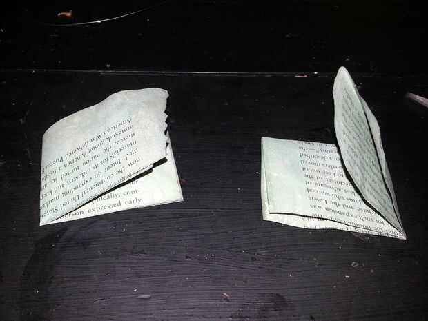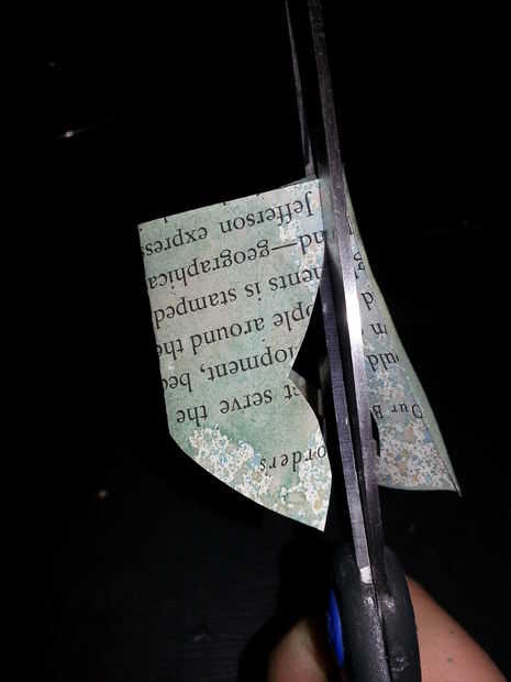 Lo único que queremos son las formas de ala, cortadas el papel. Si miran bien una vez que estén cortadas, apártelos en un montón y deseche el papel de que se cortan.