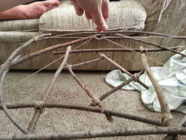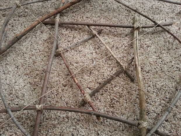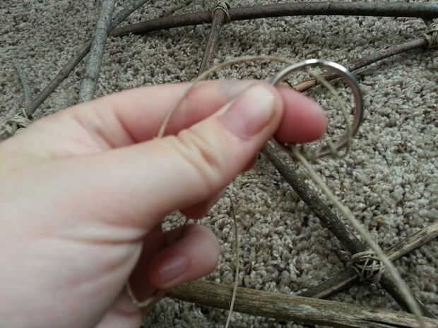 Una vez terminado, el marco debe colgar firmemente de la cuerda de cáñamo bien colocada en el aro.