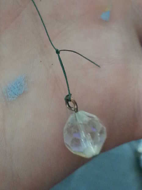 Ahora tome su peso y el otro extremo de la cadena. Utilicé mi cristal perlas para esto, pero lo está utilizando para su peso, su tiempo ahora a poner en la cuerda, así en bucle lo sin embargo de a través de bucle. Tire el peso a lo largo de la cadena hasta que esté cerca del nudo del resbalón.
