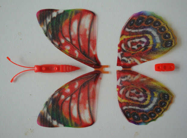 He puesto algunos pegamento encima de la mariposa, entre las alas de las alas de pie derecho. Se trata de todo un poco experimental y su mariposa puede pedir para otras soluciones.